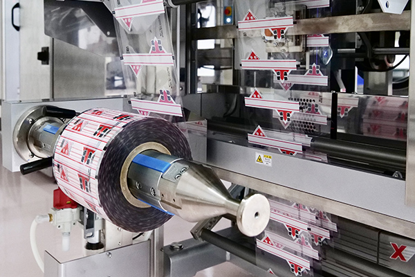 縦ピロー包装機は、包装フィルムを縦方向に流しながら筒状に成形し製品を充填して包装します。